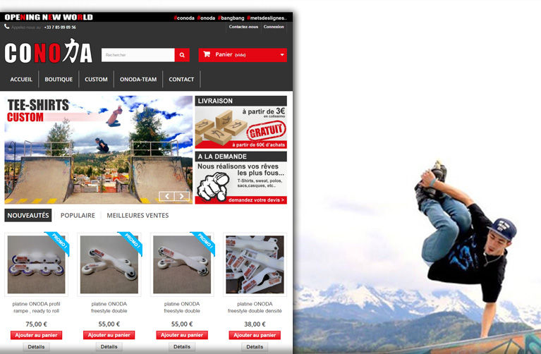 Concpetion, création et administration du site de vente en ligne Conoda.eu réalisé sur Prestashop.