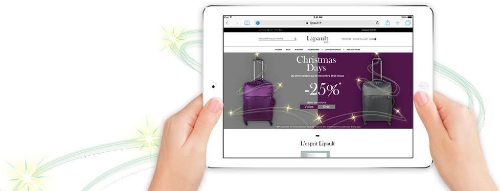 Pour les fêtes de la fin d'année 2015, la marque de bagages Lipault Paris désire mettre en avant une promotion de 25% sur les coloris gris et violet.